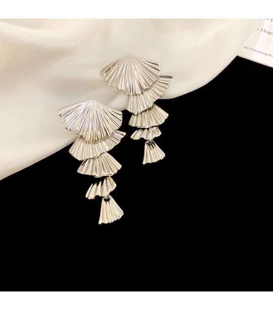 E1634 - Cold Metallic Fan-shaped Silver Pin Earrings