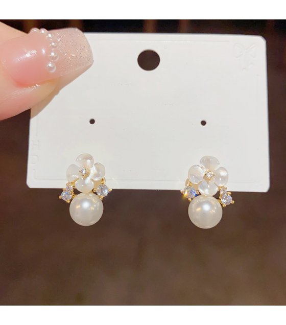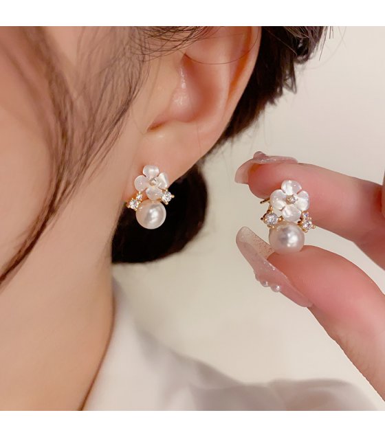 XE259 - Elegant Pearl Floral Earrings